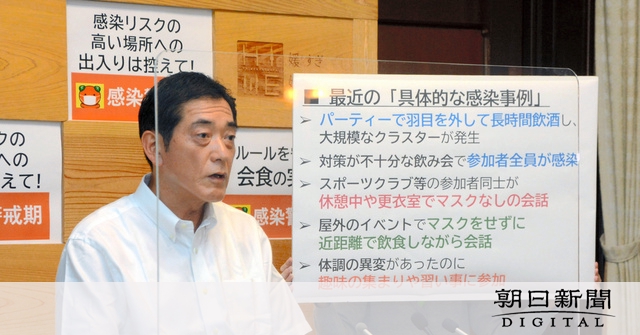 愛媛県では5日に過去最多となる582人の新型コロナウイルス感染が新たに確認された。6日の新規感染者数も、前日に次ぐ552人となった。中村時広知事は5日の記者会見で「感染拡大局面に入った」と言及。具体的な感染例も紹介しながら、県民に改めて感染回避行動を徹底するよう呼びかけた。