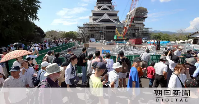 2016年4月の熊本地震で被災した熊本城の大天守の外観が復旧作業をほぼ終え、5日から特別公開が始まった。国内外から多くの人たちが詰めかけ、「復興のシンボル」の雄姿に見入った。