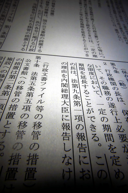 改正案はこの他、国立公文書館へ移管する文書は早期移管のため、省庁での保存期間を最長30年から20年に短縮▽省庁の判断で重要文書の保存期間は施行令よりも長く設定できる▽複数年度にまたがる文書は一つのファイルにまとめられる――などを盛り込んでいる。(編集委員・谷津憲郎)