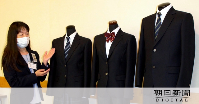 ネクタイ・リボンは中学別に青、赤、緑のしま模様を入れ、スカート・スラックスのどちらにも着用できる。市教委はLGBTなどの性的少数者への配慮から「多様性を重んじる教育」に生かすという。