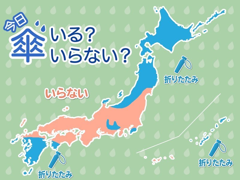 今日は大きな傘が必要なほどの本降りの雨が長い時間降る所はない予想です。