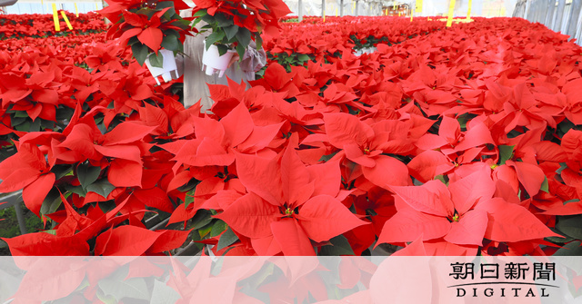 「夏の暑い光を蓄えた真っ赤なポインセチアが、心温かい冬を迎えるお役に立てればうれしい」と話す。10~12日には直売会を開催予定だ。(金子淳)