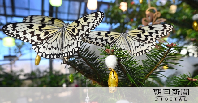 【動画】チョウのサナギを飾った「黄金のクリスマスツリー」=津布楽洋一撮影