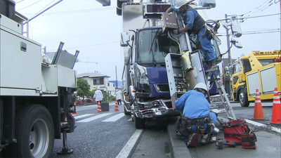 事故当時、歩行者はいなかったとみられ、けが人はいなかった。
