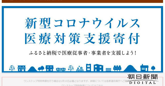 大手サイトの「さとふる」は、政府が最初の緊急事態宣言を出した昨年4月に医療従事者らへの寄付をまとめた特集ページ「新型コロナウイルス医療対策支援寄付サイト」を作った。返礼品は受け取れないが、昨年末までに15自治体に5億円を超す寄付が集まったという。