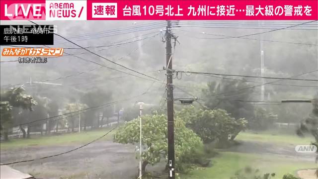 気象庁は週末から最大級の警戒を呼び掛けています。周辺にお住まいの人におかれましては、暴風、高潮、高波、大雨に厳重な警戒が必要です。台風の最新情報からお伝えします。 大型で非常に強い台風10号が九州に接近しています。引き続き大雨や暴風、高波、高潮に警戒して下さい。大型で非常に強い台風10号は、6日午後8時に鹿児島県枕崎市の南西約80キロの地点を進んでいるとみられ、九州南部のほとんどが暴風域に入っています。この後は九州の西を北上し、7日午前6時には強い勢力で対馬付近へ進む見込みです。台風の北上に伴って九州では7日にかけて猛烈な風や記録的な大雨、高波、高潮の恐れがあります。引き続き、最大級の警戒をして下さい。7日にかけて予想される最大瞬間風速は奄美や九州で60メートル、波の高さは九州南部や奄美で14メートル、7日の夕方にかけての24時間の予想雨量は九州南部で500ミリ、九州北部や東海で400ミリなどとなっています。