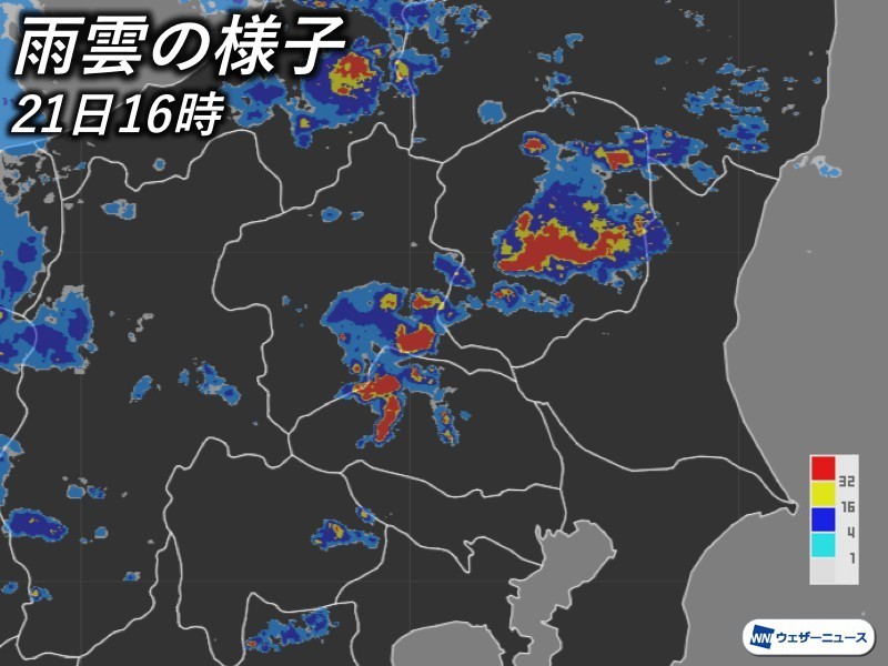今日21日(水)も大気の状態が不安定になっていて、東日本を中心に所々で雨雲が発生し、発達している所があります。