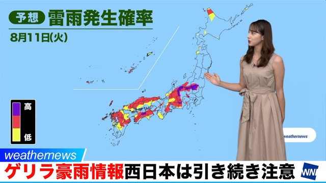 太平洋高気圧の周囲を吹く風により湿った空気が流れ込んでいる九州北部は、局地的に激しい雨が降っています。 今日いっぱいは気圧配置に大きな変化がなく、夕方にかけて同じような所で断続的に雨が続く見込みです。