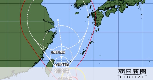 気象庁によると、強い台風12号は10日、沖縄の南の海上を北上した。今後は発達しながら北西に進み、13日ごろにかけて沖縄県の先島諸島に接近する見込み。12日ごろから動きが遅くなるため、台風に近い地域では長時間台風の影響を受ける可能性がある。