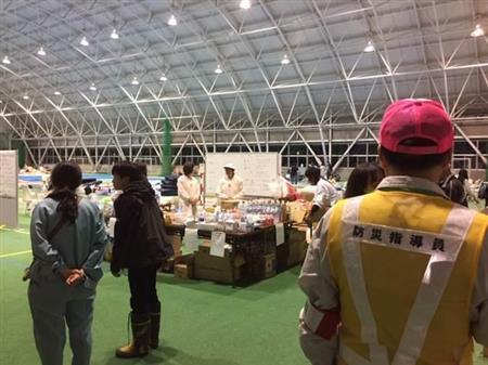 施設では、地元農協の婦人部が炊きだしのボランティアに来ており、14日だけでおにぎり約150個を用意するなどした。仲間でコメや野菜、みそなどを持ち込み、避難者に振る舞った。ボランティアの1人は「微力だけれど、避難生活を送っている人たちが喜んでくれれれば」と、調理に汗を流していた。