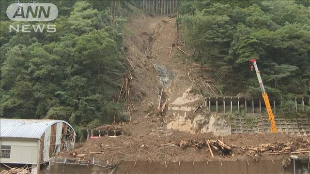 台風10号の影響で発生した土砂崩れで4人が行方不明になっている宮崎県椎葉村で、土砂の中から男性が心肺停止の状態で見つかり、その後に死亡が確認されました。 6日、椎葉村で土砂崩れが発生して建設会社の社長の妻ら4人の行方が分からなくなっています。警察などによりますと、17日午後2時半ごろ、土砂崩れ現場から約4キロ離れた下流の十根川でボランティアの男性が重機で捜索をしていたところ、土砂の中から身元不明の男性を発見したということです。男性はその後に死亡が確認されました。警察が身元の確認を急いでいます。