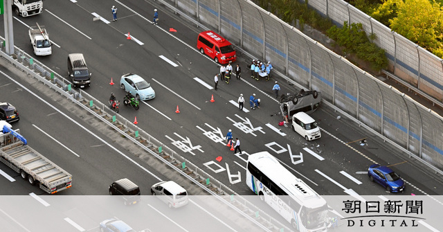 24日午後4時20分ごろ、滋賀県草津市笠山5丁目の名神高速道路上り線の草津ジャンクション付近で、観光バス会社「WORLD CABIN(ワールドキャビン)」(東京都新宿区)の観光バスと乗用車3台が絡む事故が発生した。