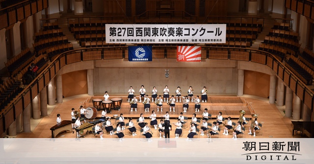 第27回西関東吹奏楽コンクール(西関東吹奏楽連盟、朝日新聞社主催)は12日、小学生の部と高校Bの部(30人以下)が埼玉県の所沢市民文化センターで、大学の部と職場・一般の部がさいたま市文化センターで行われた。高校Bで新潟と群馬の計2校が、職場・一般で山梨の2団体が出場を見合わせ、大学は全2校が録音データを審査。他の団体は無観客のなか、ステージで演奏を披露した。