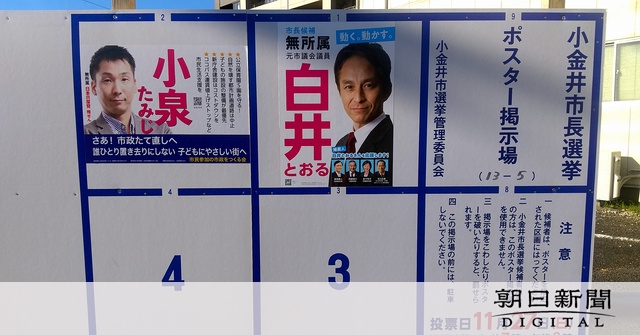 東京都小金井市長選は27日、投開票される。立候補したのは、いずれも無所属新顔で元市議の白井亨氏(47)と共産党地区委員長の小泉民未嗣(たみじ)氏(44)=共産推薦。西岡真一郎前市長が退く原因となった市立保育園2園廃止への対応などを巡り、論戦を交わしている。