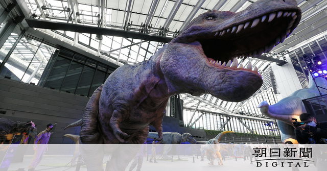 表情や鳴き声まで再現したほぼ実物大の恐竜模型が登場する「ディノアライブの恐竜たち展」が11日から、東京都新宿区の新宿住友ビル三角広場で始まった。10日の内覧会ではリモコンや音声技術を駆使したティラノサウルスとユタラプトルが会場内を自在に動き回った。30日まで。
