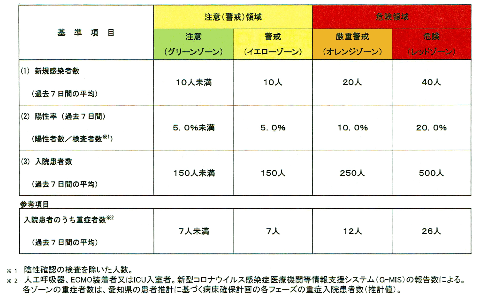 愛知県の大村秀章知事は27日午前、愛知県庁で定例記者会見に臨み、「コロナ対策は長丁場になる。コロナと対峙しながら克服するため、県や県民、事業者の責務を明確にしていく」として、今後の新型コロナ対策の基本的な枠組みを定める条例の骨子案を示した。 愛知県の大村知事が定例会見(2020年7月27日) また、午後に開かれた感染症対策会議後の会見で、同日に新たに76人の感染を確認したと発表。同時に新しい4段階の指標を定め、これまでの「警戒(イエローゾーン)」から一段先の「厳重警戒(オレンジゾーン)」「危険(レッドゾーン)」を見据え、医療体制の整備などを進めるとした。