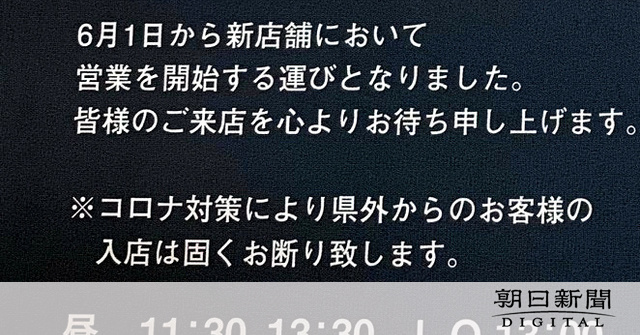 「コロナ対策により県外からのお客様の入店は固くお断り致します」