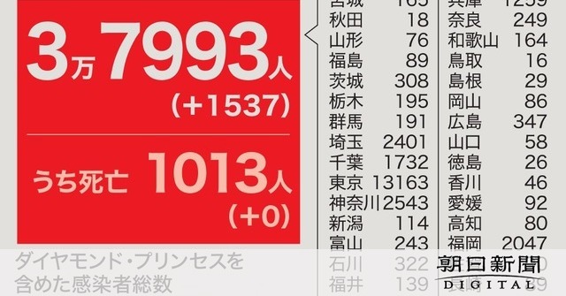 新型コロナウイルスの国内の感染者は1日、午後9時現在で新たに1537人が確認された。1日あたりの感染者数が1千人以上となるのは4日連続。東京都で過去最多となる472人の感染を確認したほか、埼玉、千葉、三重、奈良、和歌山、山口、長崎の計7県でも1日あたりの最多を更新した。大都市の周辺で感染が広がっている。