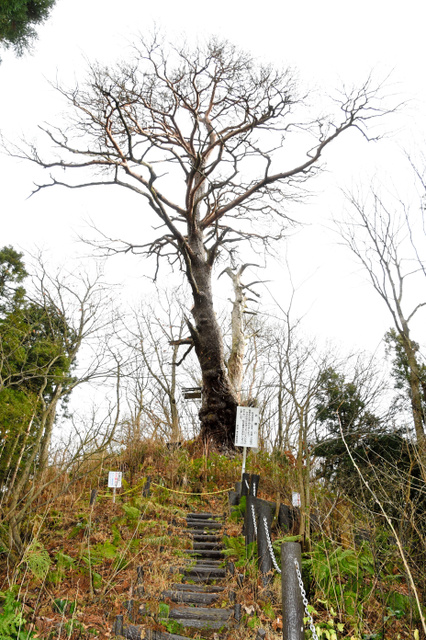 町によると、大アカマツは推定樹齢約600年。高さ26メートルで、幹回りは8・56メートルある。1988年に環境庁(当時)が実施した調査で幹回りの長さが全国2番目のマツと認定された。その後、1番だった香川県志度町(現・さぬき市)の「岡の松」が93年に枯れ、日本一に昇格。同年12月、県が天然記念物に指定し、町のシンボルとして親しまれてきた。