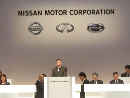 大株主のルノーが日産との経営統合案を表明するなど波紋が広がっており、出席した株主からは「ルノー不信」の質問や動議が相次いで会場からは大きな拍手が起こった。