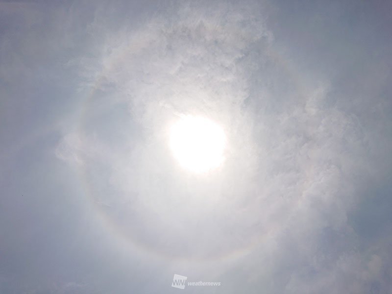 その前触れとも言える虹色の環「ハロ」が、広く西日本で目撃されています。