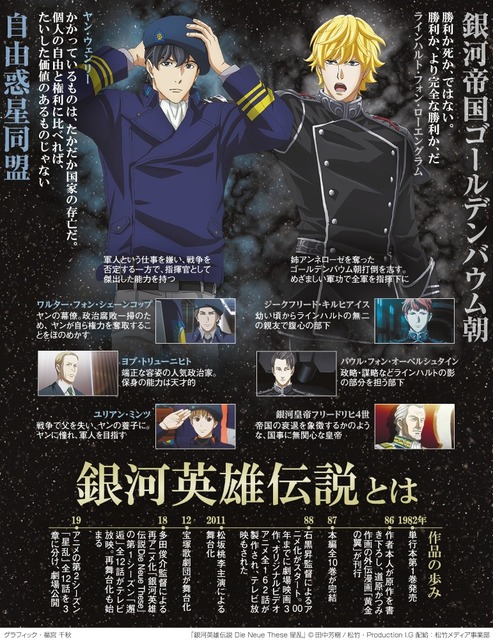 登場人物は650人以上。多田俊介監督による再アニメ化と共に進行中の舞台版を演出する大岩美智子さん(41)は「脇役一人ひとりにまで魂が感じられ、人間として理解・共感できるのが大きな魅力」と話す。創元SF文庫から本編全10巻、外伝5巻が刊行中で、東アジアを中心に海外での人気も高い。中国では実写映画化が進行中だ。