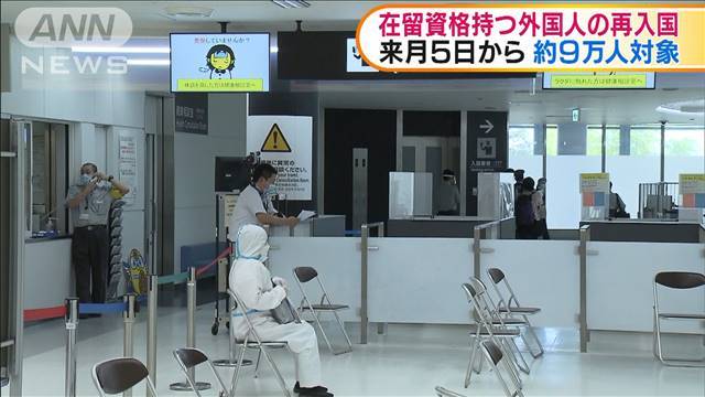 外務省は日本に在留資格を持つ外国人について、来月5日から日本への再入国を認めると発表しました。 現在、入国拒否対象地域から再入国できるのは特段の事情がある永住者や日本人の配偶者などに限られています。来月5日からは入国拒否の対象になる前に再入国許可を持って日本を出国した在留資格を持つ人、全員の再入国を認めるとしています。日本へ向けて出国する前の72時間以内にPCR検査を受けて陰性であることなどが条件で、約9万人が対象となります。また、タイとベトナムにおいて新たに長期滞在者などの往来再開を認める手続きも29日から始まりました。