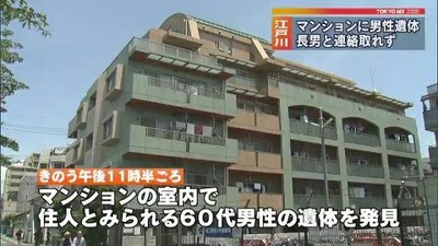 東京・江戸川区のマンションで、住人とみられる男性が遺体で見つかりました。警察はこの男性の長男の行方を捜しています。