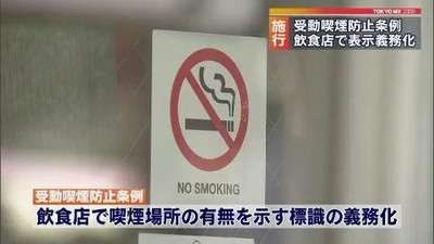 東京オリンピック・パラリンピックに向けて「たばこのない街」を目指す東京都は、都独自の受動喫煙防止条例を一部施行し、飲食店で喫煙場所の有無を示す表示を義務化しました。