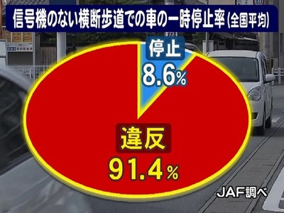 しかし、JAFが去年公表した調査結果では、一時停止するドライバーは全国平均でわずか8.6パーセント。実に9割以上が違反しています。中でも三重県は1.4%と、47都道府県でワースト3位です。