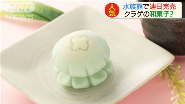 水族館で連日完売となり、話題の和菓子。数量限定のため、早い時は半日で売り切れるそうです。この和菓子は先月、サンシャイン水族館にクラゲをテーマにした新エリアがオープンしたのを機に販売を始めたものです。クラゲの飼育スタッフが監修してデザインしたそうです。ちなみに、この和菓子が買えるのは今月末までだということです。