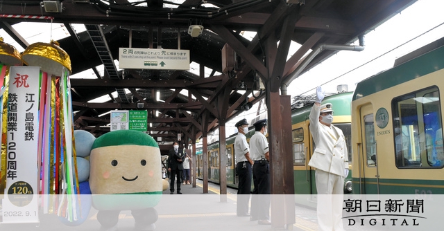 鎌倉と藤沢を結ぶ「江ノ電」が1日、開業120周年を迎え、江ノ島駅で記念の出発式があった。