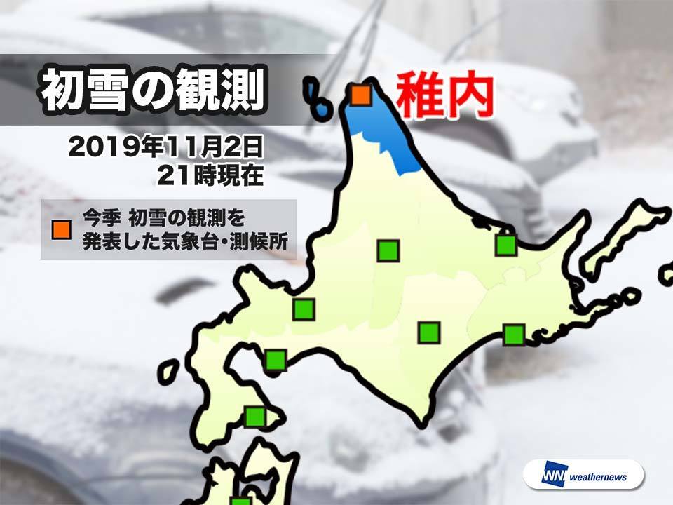 今日11月2日(土)20時すぎ、北海道稚内市で「みぞれ」が降り、稚内地方気象台は今冬の初雪が観測されたと発表しました。平年より11日遅く、昨季より12日早い観測でした。