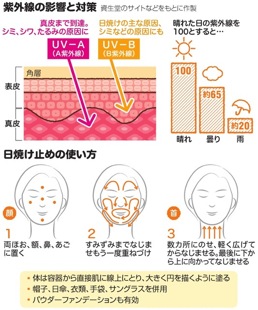 晴天の日は、日差しの強さを感じる季節になった。そこで気になるのが、紫外線。シミやシワの原因になるとされるが、どんな対策をすればいいのか。