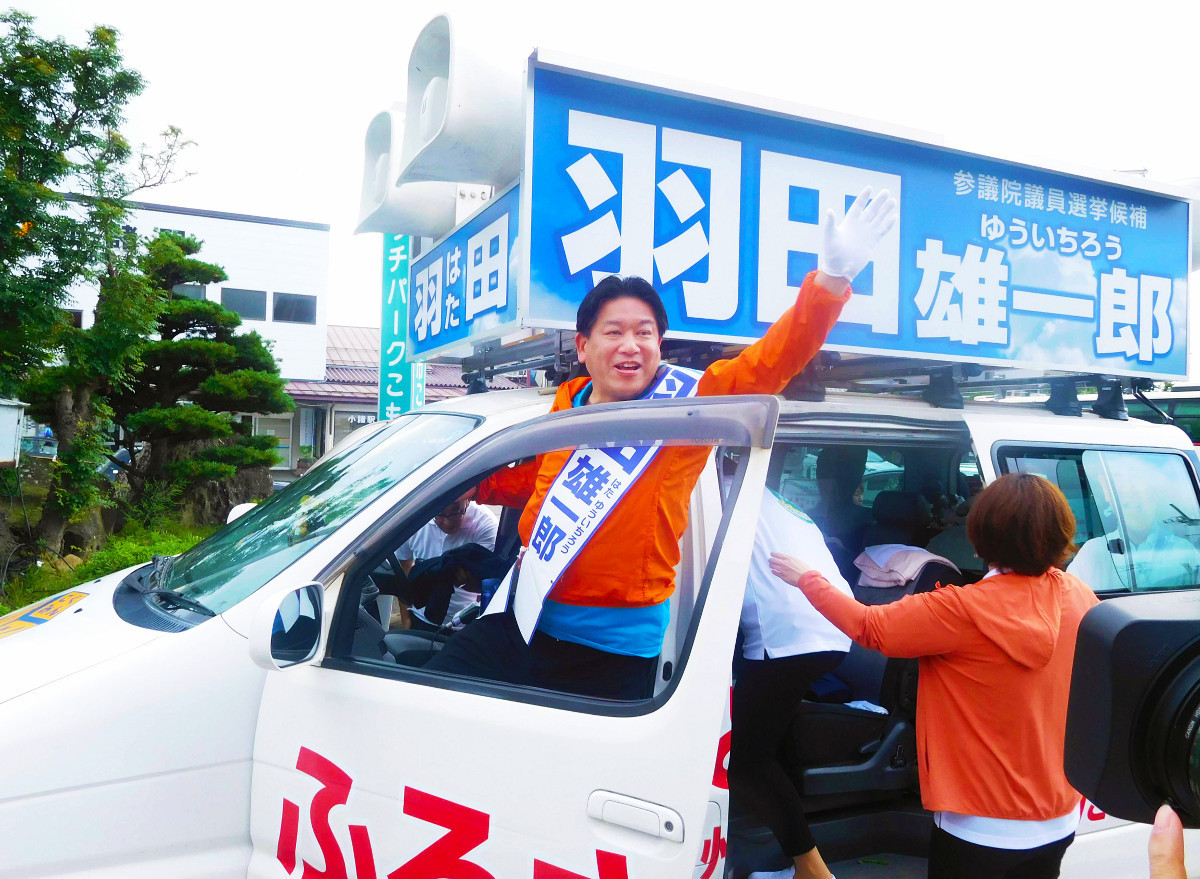 「野党統一候補として押し上げていただき、ありがとうございます」。羽田氏の演説は市民団体を中心とした聴衆に感謝の意を示すことから始まった。元首相の長男。圧倒的な知名度を誇り、やや優勢に戦いを進めている。陣営関係者は「油断なんてしてられません。まだまだです」と気を引き締めるが、保守層にも浸透しつつある。