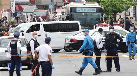 襲撃したのは50代の男で、自分で首付近を刺した後、身柄を確保されたが、死亡が確認された。県警は殺人事件として捜査し、所持品などから男の身元の特定を急いでいる。