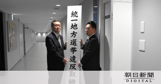 捜査2課によると、19日現在、違反での検挙はなく、警告が37件(前回統一選の同時期比16件増)。警告はすべて、立候補予定者の名前が書かれた「のぼり旗」を掲げるなどの文書掲示違反だった。