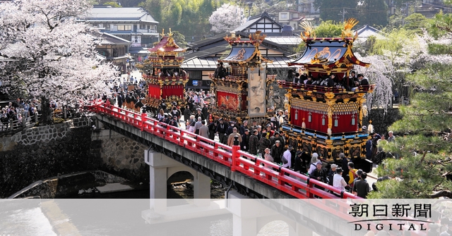 江戸時代から受け継がれる絢爛(けんらん)豪華な祭り屋台で知られる「春の高山祭」(山王祭)が14日、岐阜県高山市で始まった。桜が見頃を迎えるなか、11台が屋台蔵から曳(ひ)き出され、国内外から訪れた観光客たちが通りを埋めた。