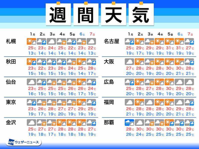 西日本や東日本では25℃以上の夏日となる日が多く、30℃近くまで気温が上がる所もある見込みです。