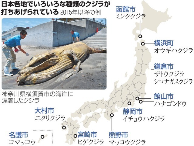 神奈川県の海岸で5月、相次いでザトウクジラの死体が打ち上げられた。「クジラやイルカが漂着している」という報告は全国で年300件ほどあるという。どう死んで、なぜ打ち上げられるのか。