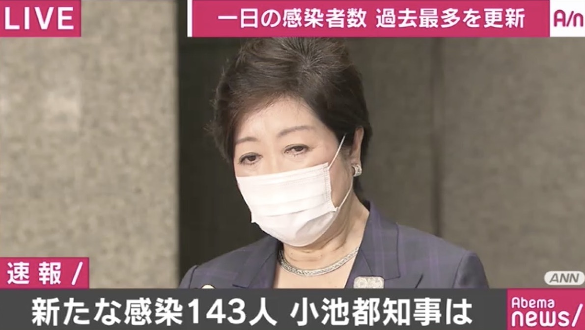 東京都で新たに判明した感染者数が143人に達したことについて、小池知事は5日夜、記者団に対して「驚くような数字。もっと驚くのが、感染のリンクが追えない方が90名を超えていること、20~40代の若い世代が圧倒的に多いこと。若い方々の行動力、行動半径の広さが感染に一役買ってしまっている。今後どうなるのか」とコメントした。