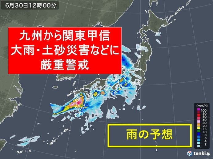 きょう30日火曜日は、朝鮮半島付近の低気圧がゆっくり東進し、梅雨前線が九州から本州付近に停滞する見込みです。南海上から湿った空気が次々に流れ込むため、前線の活動が活発化し、大気の状態が非常に不安定になるでしょう。