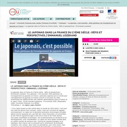 Le japonais dans la France du 21ème siècle : défis et perspectives / Emmanuel Lozerand. In Le…