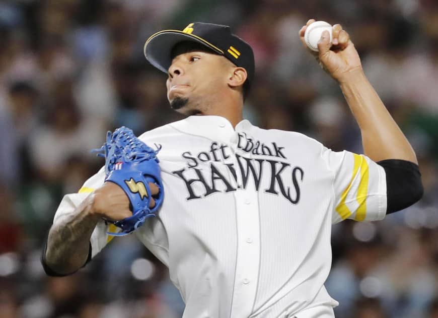 FUKUOKA – Ariel Miranda pitched out of a pair of bases-loaded jams and Kenji Akashi delivered a tie-breaking, two-run single as the Fukuoka SoftBank Hawks beat the Hokkaido Nippon Ham Fighters 2-0 in the Pacific League on Sunday.