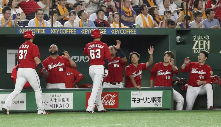 The Carp improved to 12-3 since the All-Star break and moved within a half-game of the second-place Yokohama BayStars in the CL standings. The league-leading Giants are another 3½ games further ahead.