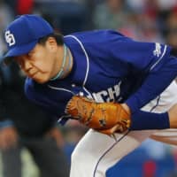 The 39-year-old lefty baffled the reigning Pacific League champions with his wide selection of low-speed pitches during seven scoreless innings. Ishikawa, who is tied for second in interleague wins with Fukuoka SoftBank Hawks southpaw Tsuyoshi Wada and Chiba Lotte Marines right-hander Hideaki Wakui, left with a 4-0 lead after giving up back-to-back one-out singles in the bottom eighth.