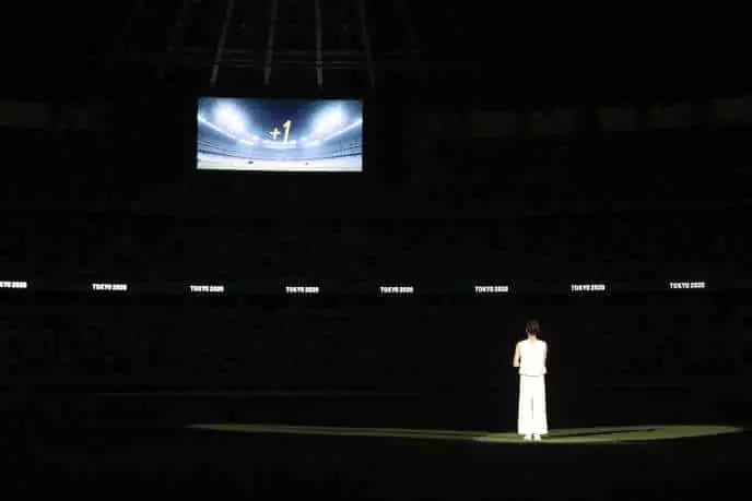D’espoir il fut beaucoup question au cours de cette mini-cérémonie, marquée par la diffusion d’une vidéo titrée One Step Forward + 1 qui incluait un hommage « à tous ceux qui s’engagent pour la société », personnel soignant ou d’entretien, et par le message de Rikako Ikee, jeune nageuse nippone en phase de guérison d’une leucémie.