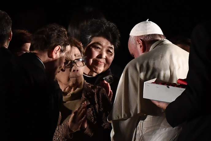 En visite au Japon, le souverain pontife François a rencontré des « hibakusha », survivants du bombardement atomique et a appelé à « laisser tomber les armes ».