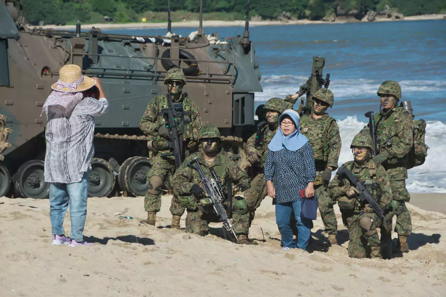 Son article 9 stipule que « le peuple japonais renonce à jamais à la guerre » et, dans cet objectif, qu’« il ne sera jamais maintenu de forces terrestres, navales et aériennes, ou autre potentiel de guerre » dans le pays. En 1954, pour affirmer ce qui apparaît aujourd’hui de plus en plus comme une fiction sémantique, l’armée nippone a été baptisée « forces d’autodéfense japonaises ». Curieux paradoxe que celui d’un pays se dotant d’armes tout en promettant de ne jamais les utiliser et qui n’a jamais tiré un coup de feu depuis 1945. A ce jour, il possède quatre porte-hélicoptères et porte-avions, vingt sous-marins d’attaque et plus d’une centaine d’avions de chasse, dont des F35 américains de dernière génération…