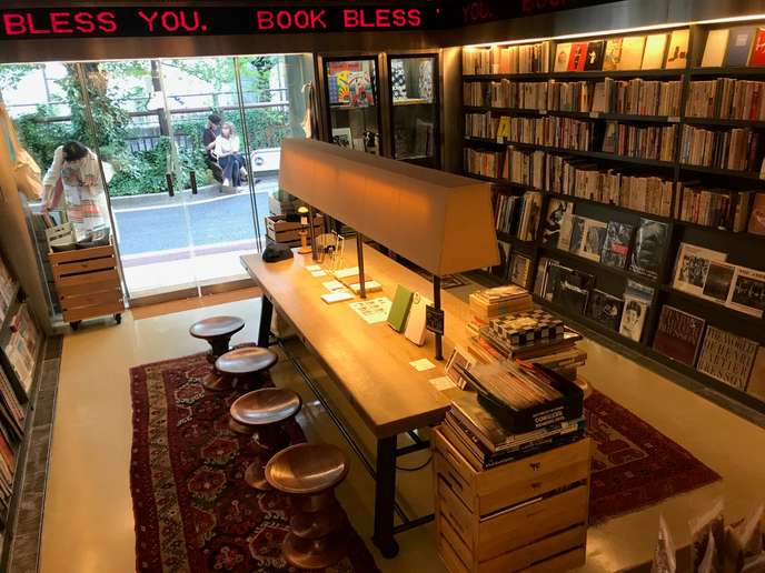 Le mot d’ordre de cette librairie est inscrit sur la devanture : « Everything for the freedom. » On y trouve des livres pointus et des magazines vintage, avec un focus sur la littérature contestataire des années 1960-1970 (une partie est en anglais, ou illustrée). Certains ouvrages se feuillettent sur la table en bois centrale dans une ambiance comme à la maison. Plus loin, la librairie Tsutaya vaut aussi le détour.
